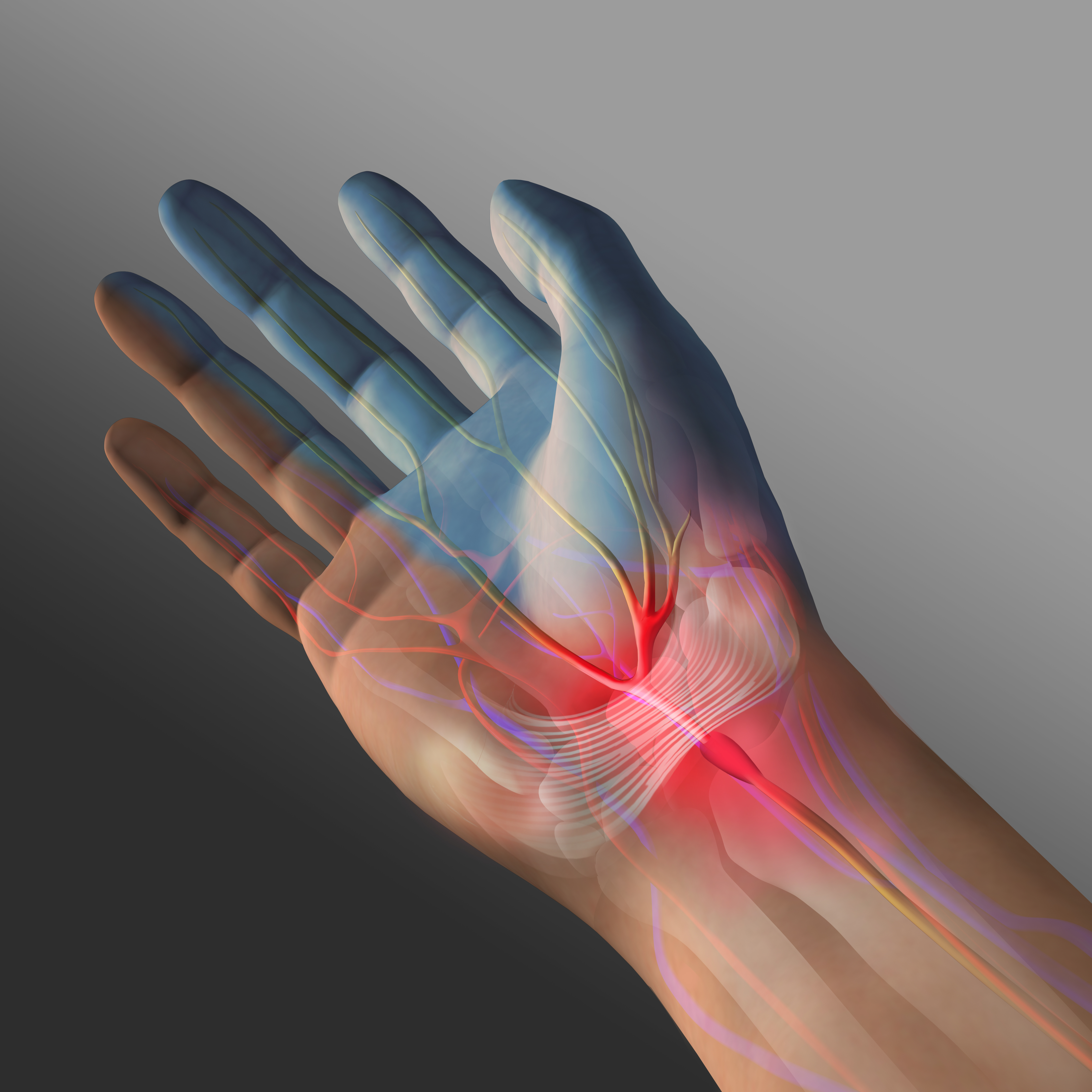 손목 한가운데의 빈 공간(수근관, 손목터널) 중앙을 통과하는 정중신경이 여러가지 원인으로 인해 압박이 가해져서 장기적인 통증이 일어나거나, 심할 경우 엄지 등이 마비되어 잘 움직여지지 않는 증상을 말합니다.