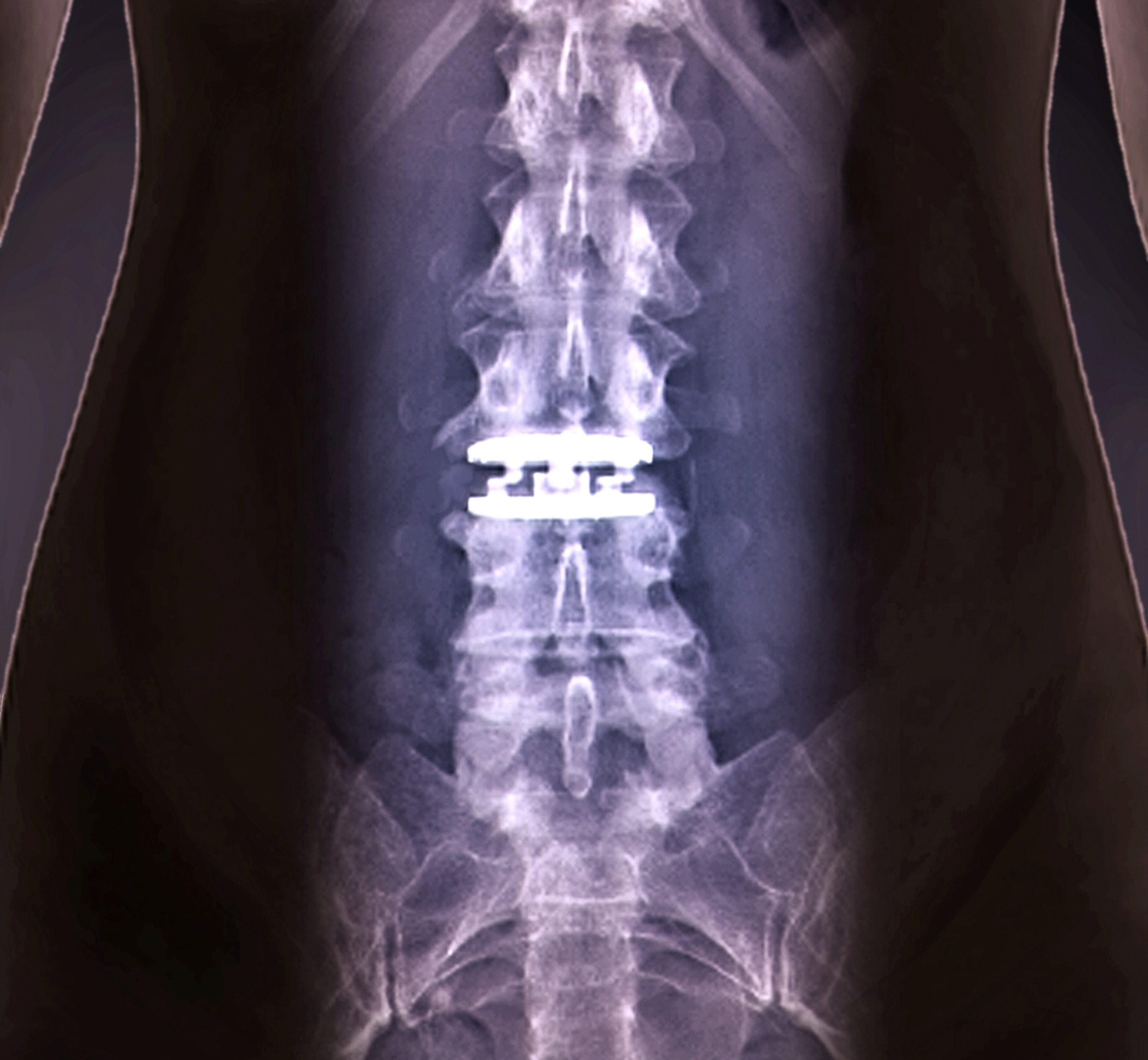 척추신경을 누르는 디스크 마디 전체를 모두 제거하고 양쪽의 티타늄 금속판 가운데에 폴리우레탄 핵으로 구성된 인공디스크로 바꿔줍니다.
