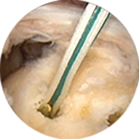 완전파열일 경우 관절내시경을 이용해 끊어진 부위를 봉합하는 수술을 시행합니다. 견봉뼈의 골극이 자라 회전근이 충돌한다면 견봉성형술로 튀어나온 뼈를 다듬어 줍니다.