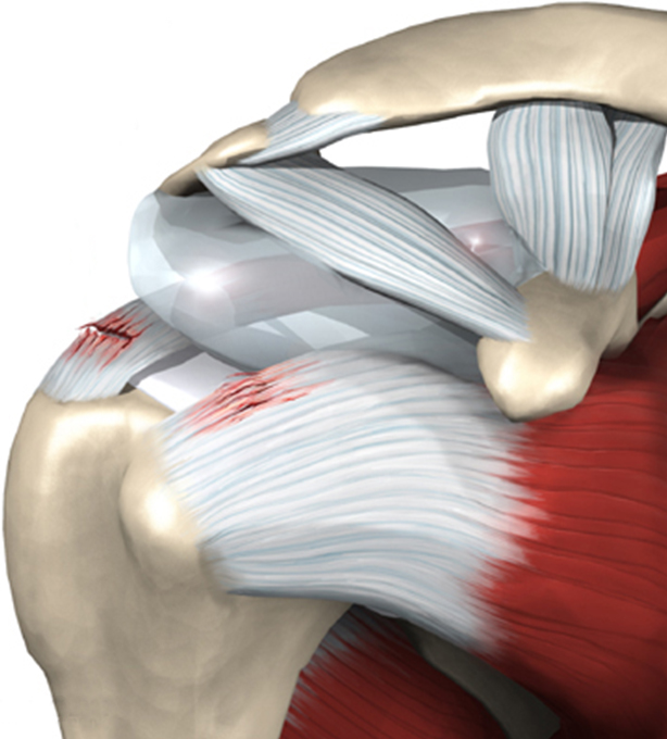 어깨를 감싸고 있는 4개의 힘줄이 반복적인 충격이나 자극이 가해져 약해지면서 파열되어
